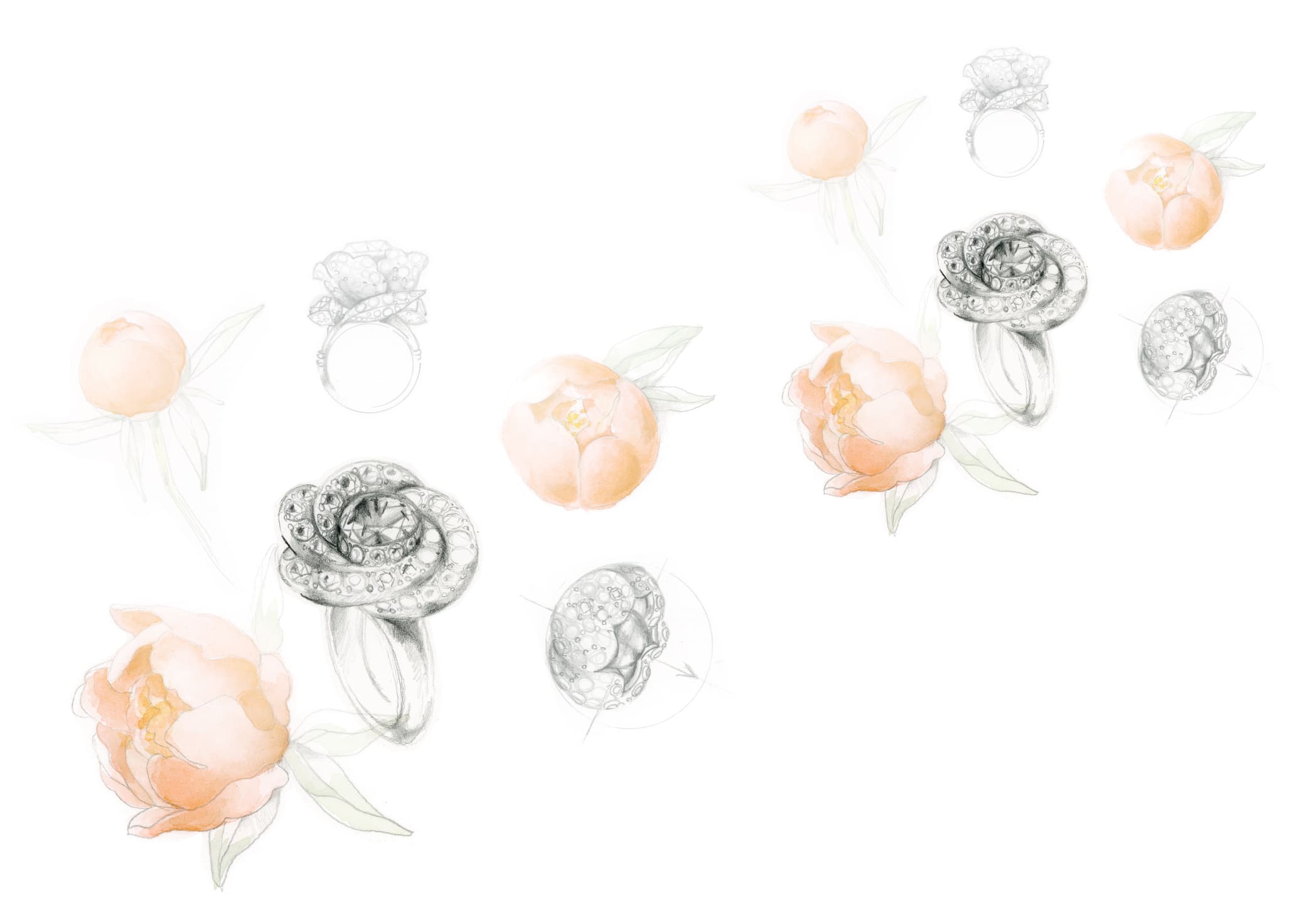 Experte de chaque étape du processus de fabrication d’une pièce de Joaillerie, elle en coordonne ensuite le développement au sein de son atelier, tel un chef d’orchestre.